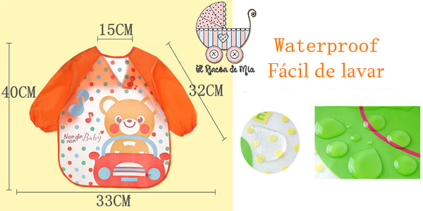 Este babero con mangas es ideal para que tu bebé no ensucie su ropa ya sea en la hora de comer o en la hora de hacer sus obras de arte gracias a su impermeabilidad por lo que también son fáciles de limpiar.