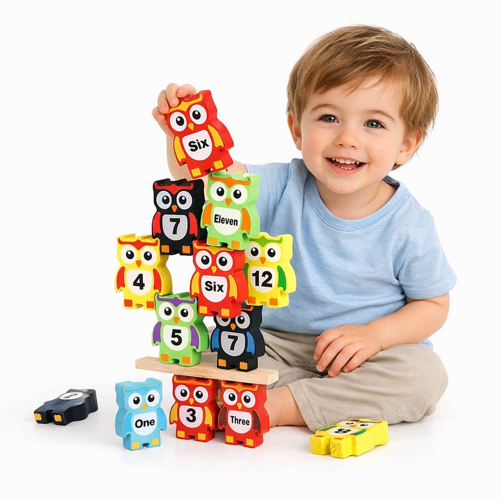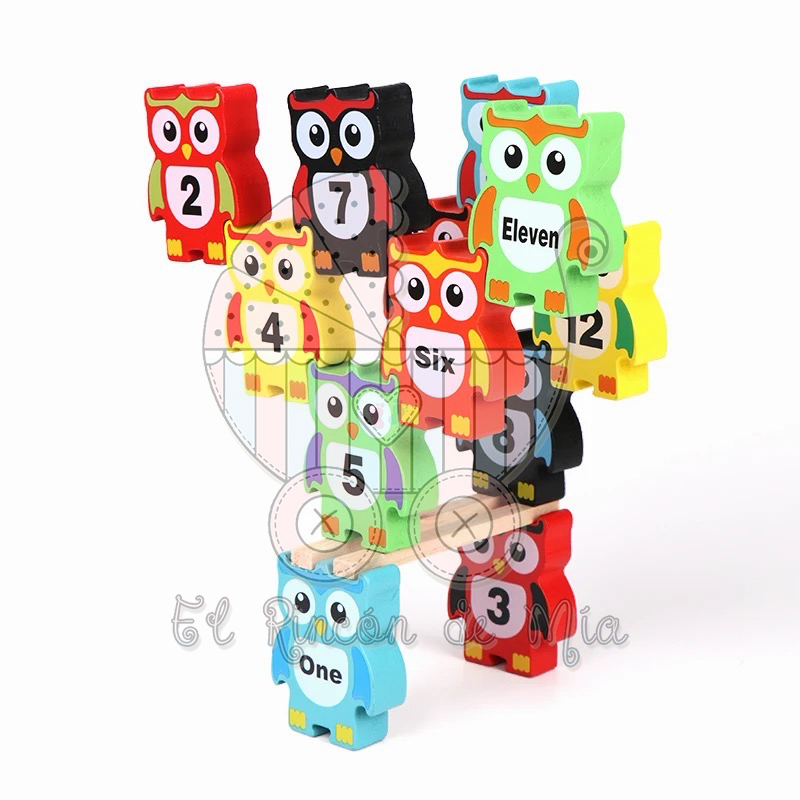 Los búhos de equilibrio cuentan con 12 piezas apilables con las cuales puedes buscar el equilibrio perfecto para crear con tu imaginación una torre y desarrollar de manera simultánea las tan importantes habilidades motrices.