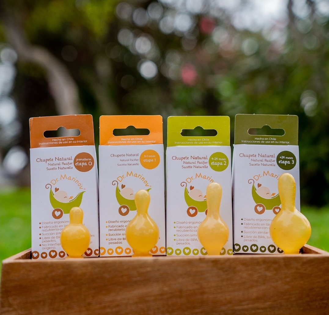 Chupete Dr Marinov es fabricado con Látex Natural de alta pureza, Forma ergonómica y anatómicamente similar al pezón y al pecho materno.
