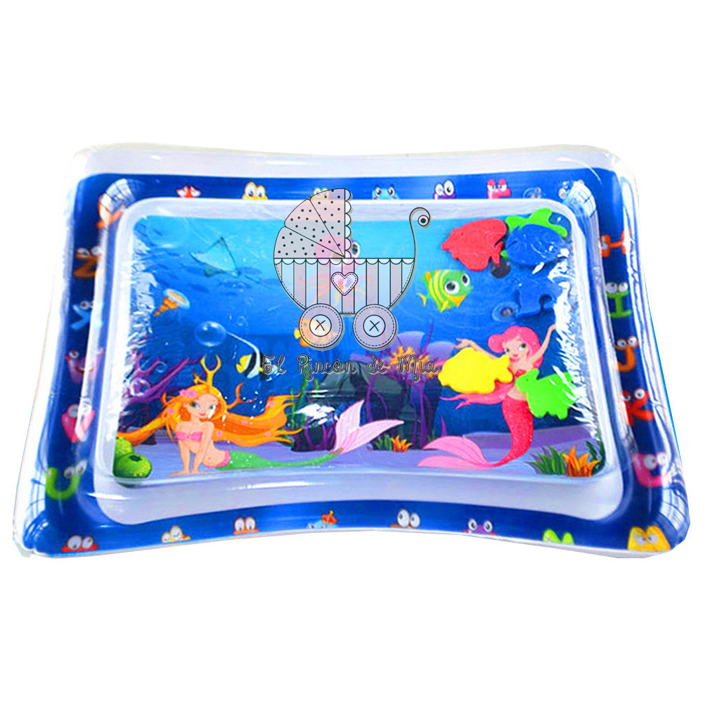 Colchón de agua o alfombra sensorial es ideal para la estimulación temprana sensorial ayudando a desarrollar las habilidades cognitivas y motoras del bebé gracias a sus figuras de goma eva que flotan en el agua.