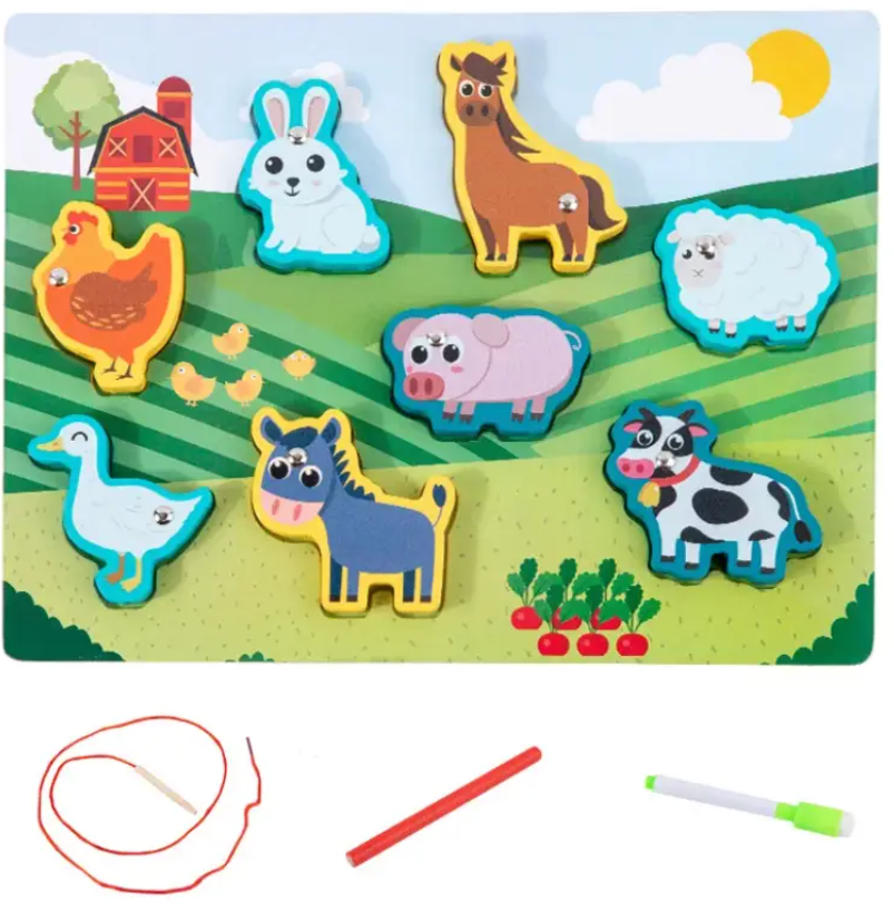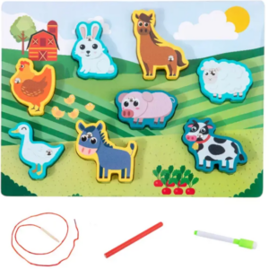 - Enhebrar: Todos los dinosaurios traen un agujero para poder enhebrarlos y seguir trabajando la motricidad fina.
