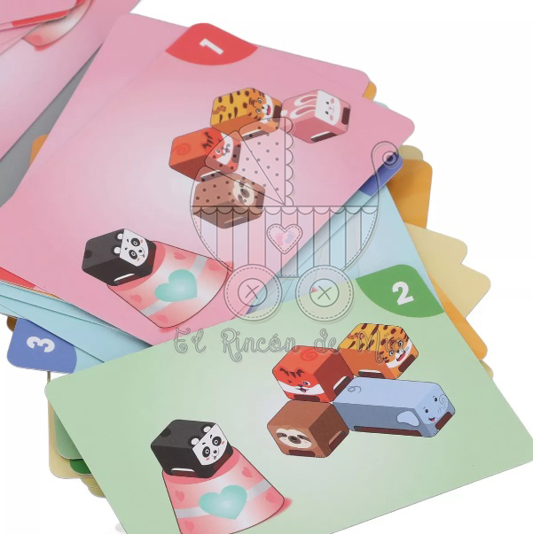 Es un juego que se puede jugar de manera individual o grupal, consta de tomar una carta y construye bloques de animales en expectativa 3D de acuerdo con el patrón que se muestra, debiendo quedar en la misma dirección de la carta los animales. Cuando se completa el rompecabezas, toca la campana el que logra hacerlo de la manera más rápida, cada carta tiene un nivel de complejidad.