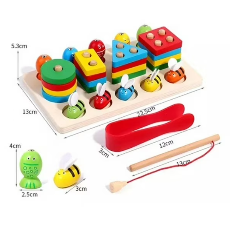 Juego Didáctico 3 en 1 (Pesca Magnética, Encaje y Abejas)