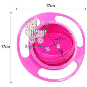 Este plato bowl 360° antiderrame es ideal para que a nuestros pequeños al mover el plato no se le caiga con tanta facilidad los alimentos, también es muy práctico salir con nuestros pequeños gracias a su tapa para que no se caigan su contenido.